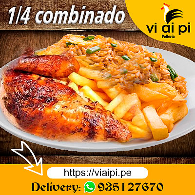 Delicioso pollo a la brasa + chaufa combinado + papas + cremas